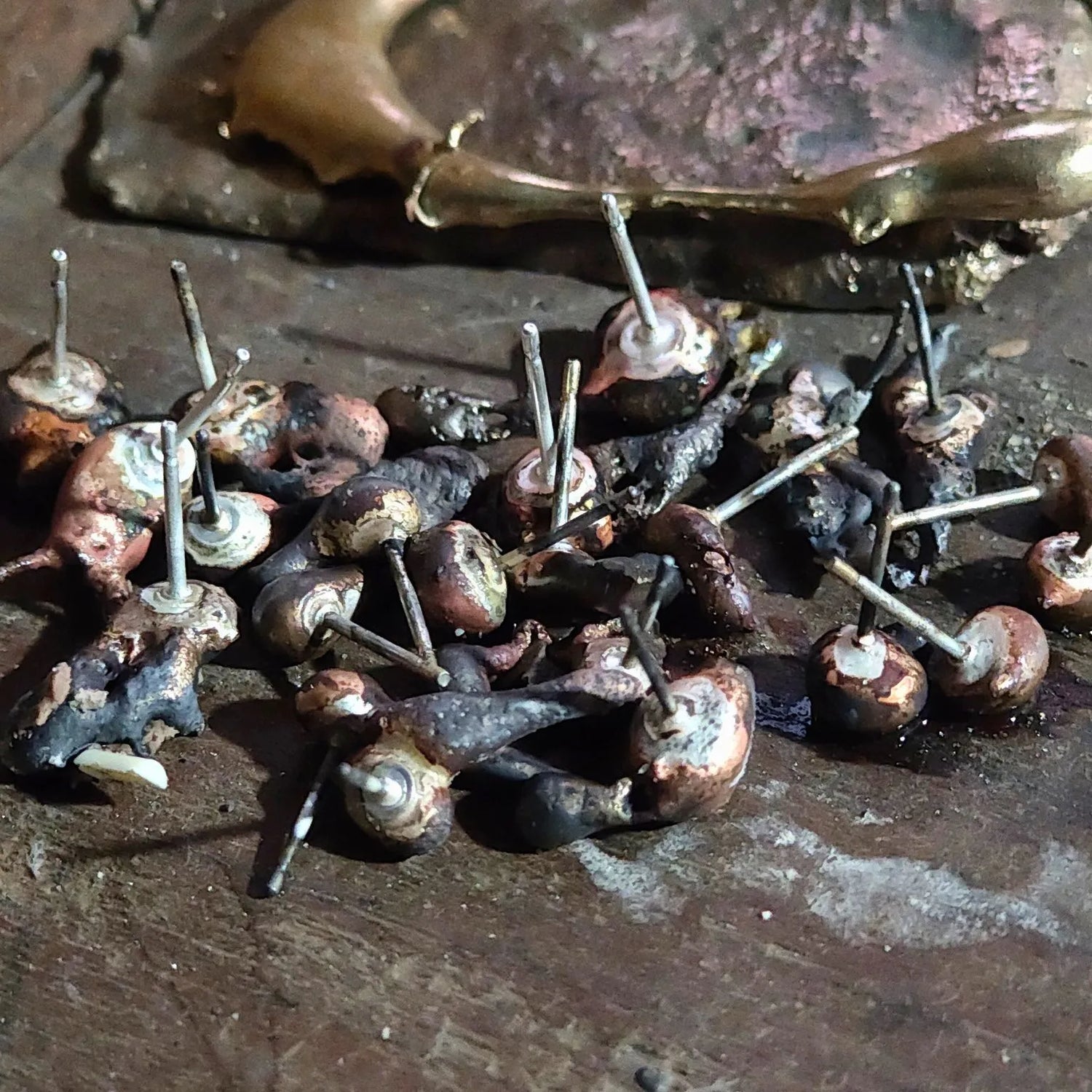 Foundry Collection pieces begin as reclaimed bronze ‘spill’ formed during industrial casting at Newcastle Foundries. Each fragment is refined by hand, preserving the material’s naturally formed surface while ensuring it’s comfortable and wearable.